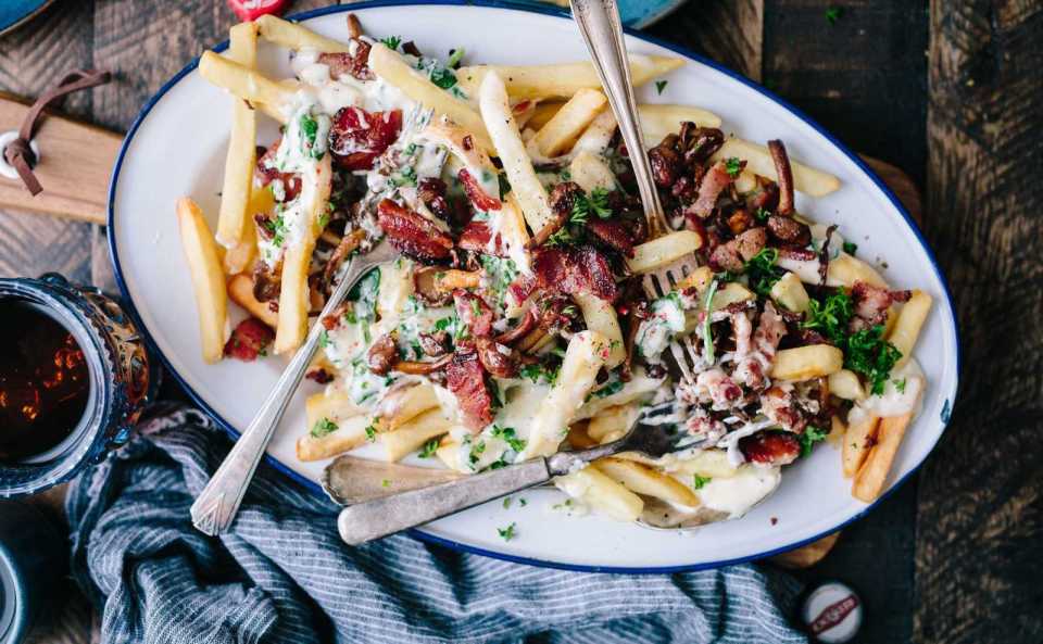 I know, what could be better that a steaming plate of fries, gravy and cheese curd? Fries, gravy, cheese curd and bacon, that’s what! Throw in some fresh shallots, chilli, and a splash of roasted bone marrow and duck gravy, and we turn this popular French-Canadian dish into a something sublime.